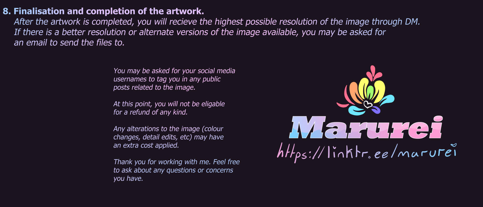 By commissioning me, you are agreeing to my general Terms of Service! Thank you.
